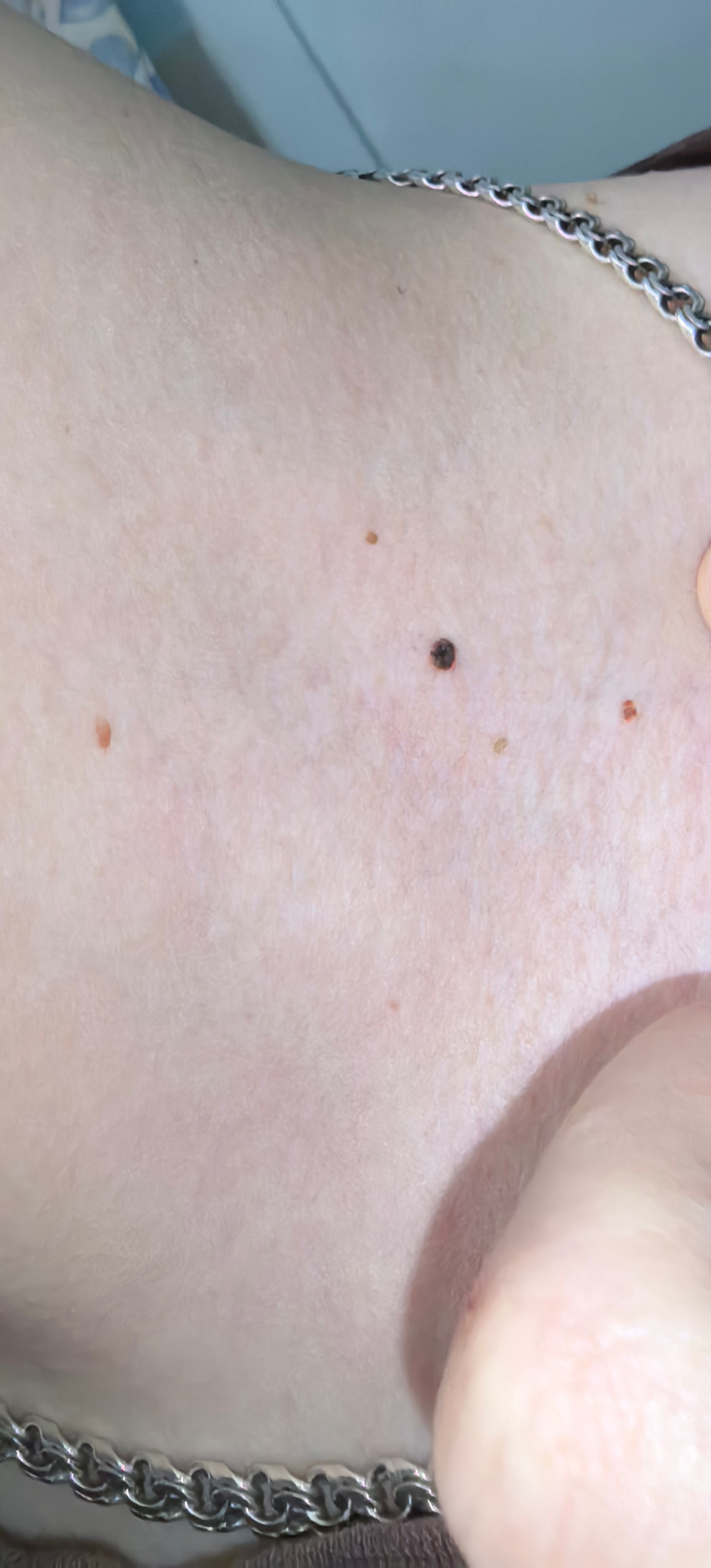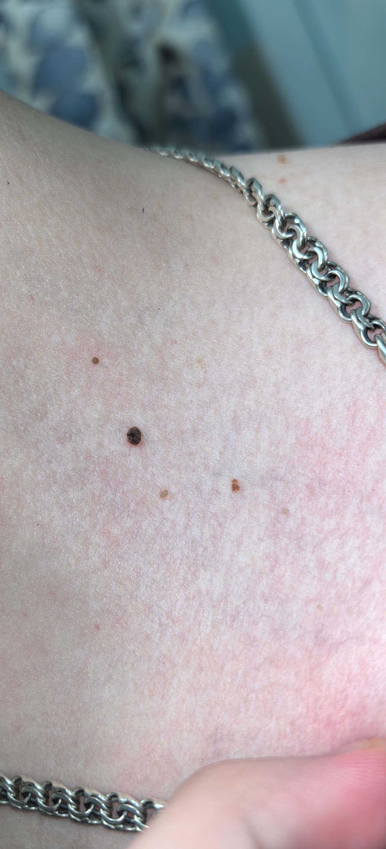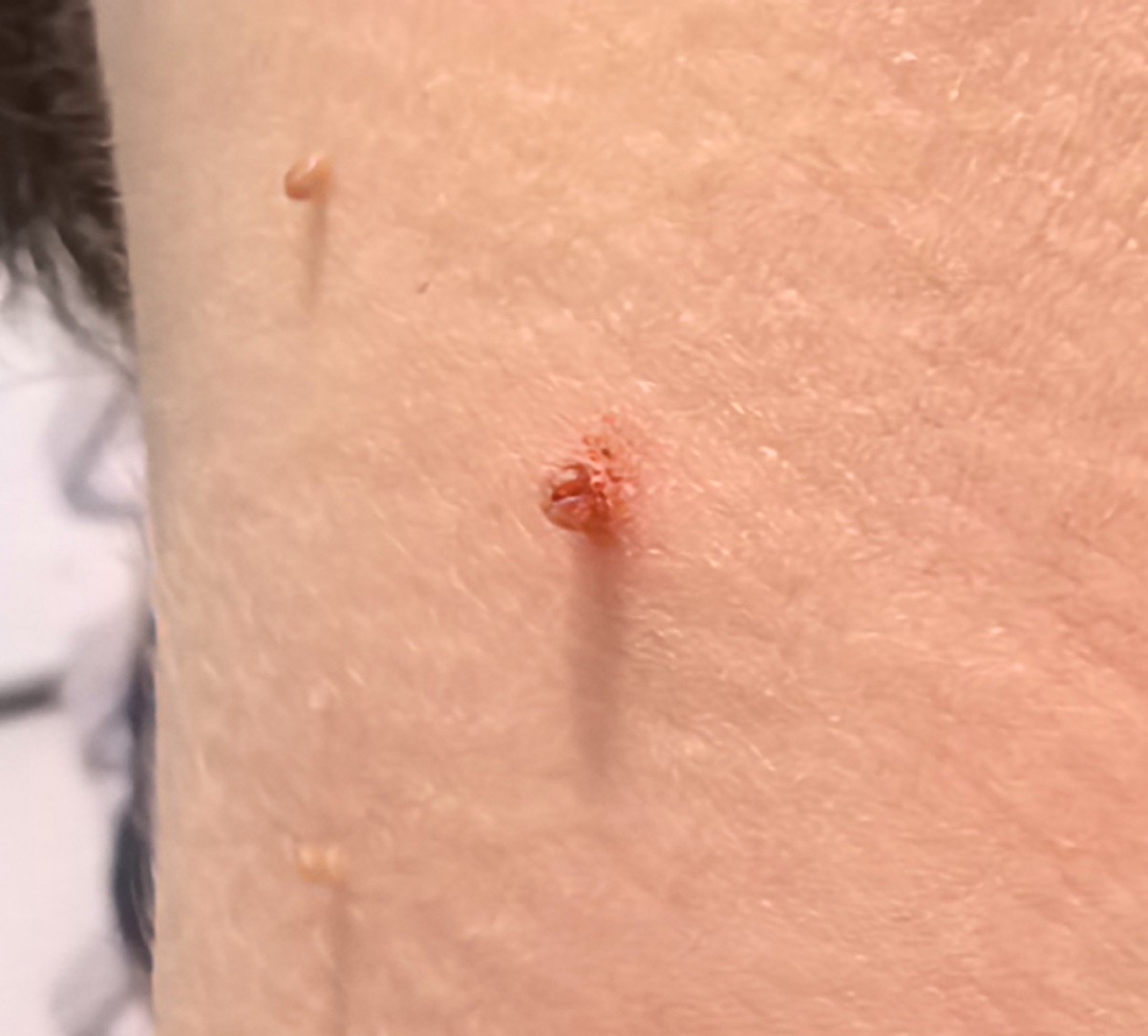 Здравствуйте, очень интересует вопрос, связанный с родинками, всегда была эта родинка, но сегодня заметил, что она какая-то странная, хотел как раз спросить, это точно нормальный вид родинки или всё-таки стоит забеспокоиться, а еще сегодня немного случайно подсодрал что-то похожую на родинку, но явно не ее.