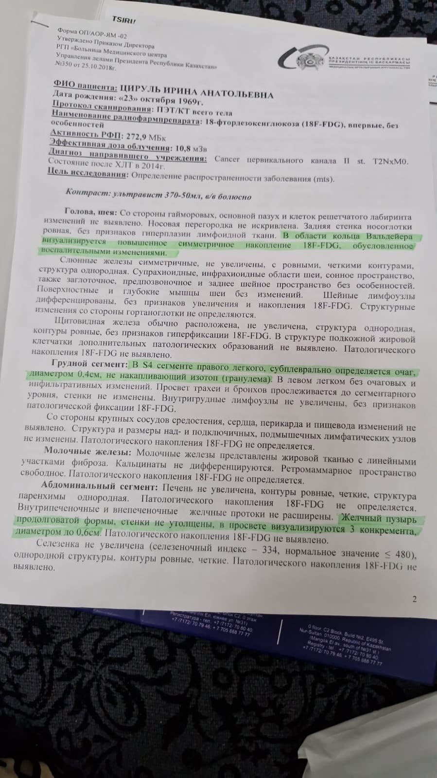 Выявлены очаговые образования на ПЭТ -Кт Моей маме 62 года. В анамнезе удалена часть...