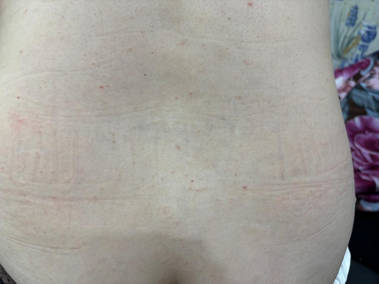 Здравствуйте, появилась сыпь внизу живота, бокам, спине (прям по кругу) и одной руке. Не чешется, Т не повышена, не болит.