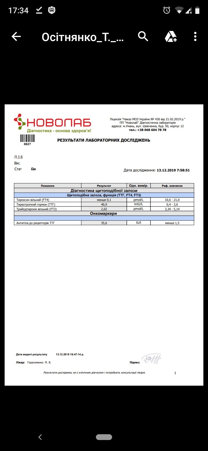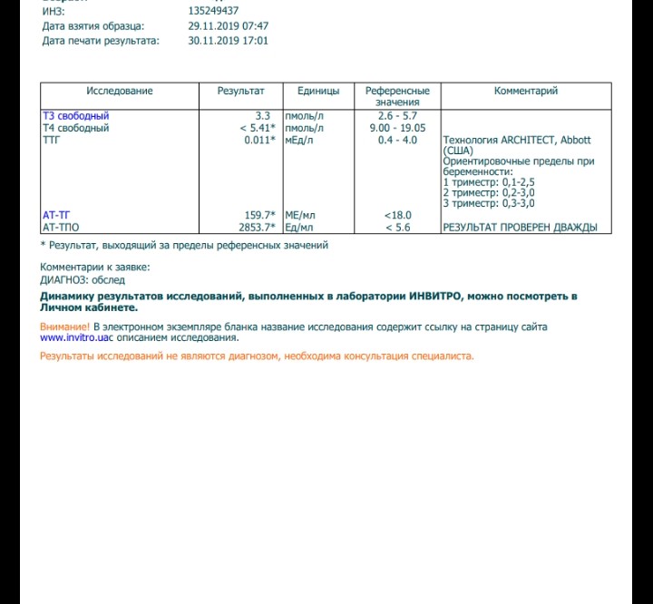 Прошел месяц, повторно сдала анализы! Прилагаю результат! Я все так же принимаю 30 мг Тирозола ежедневно. На запись к доктору только через неделю.