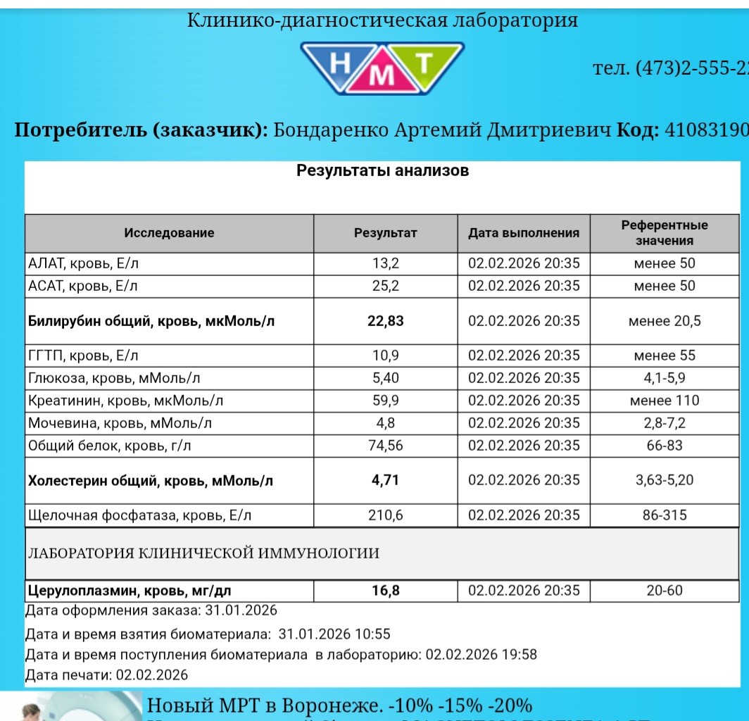 по вашим ответам картина в целом спокойная и не похожа на болезнь Вильсона как первичный вариант.