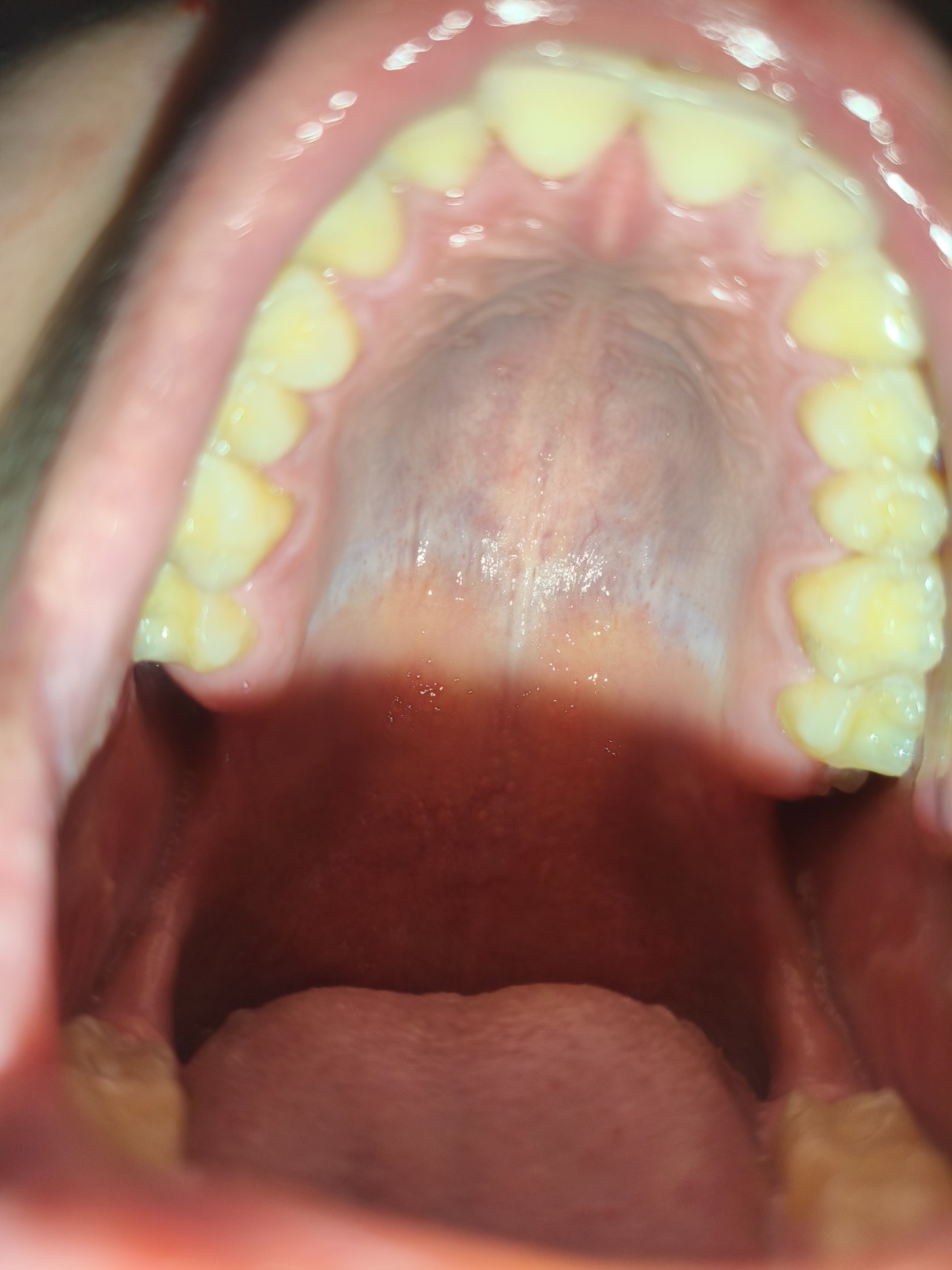 Желтизна на твердом небо, красные пятнышки на небо чешется Помогите пожалуйста. Небо...