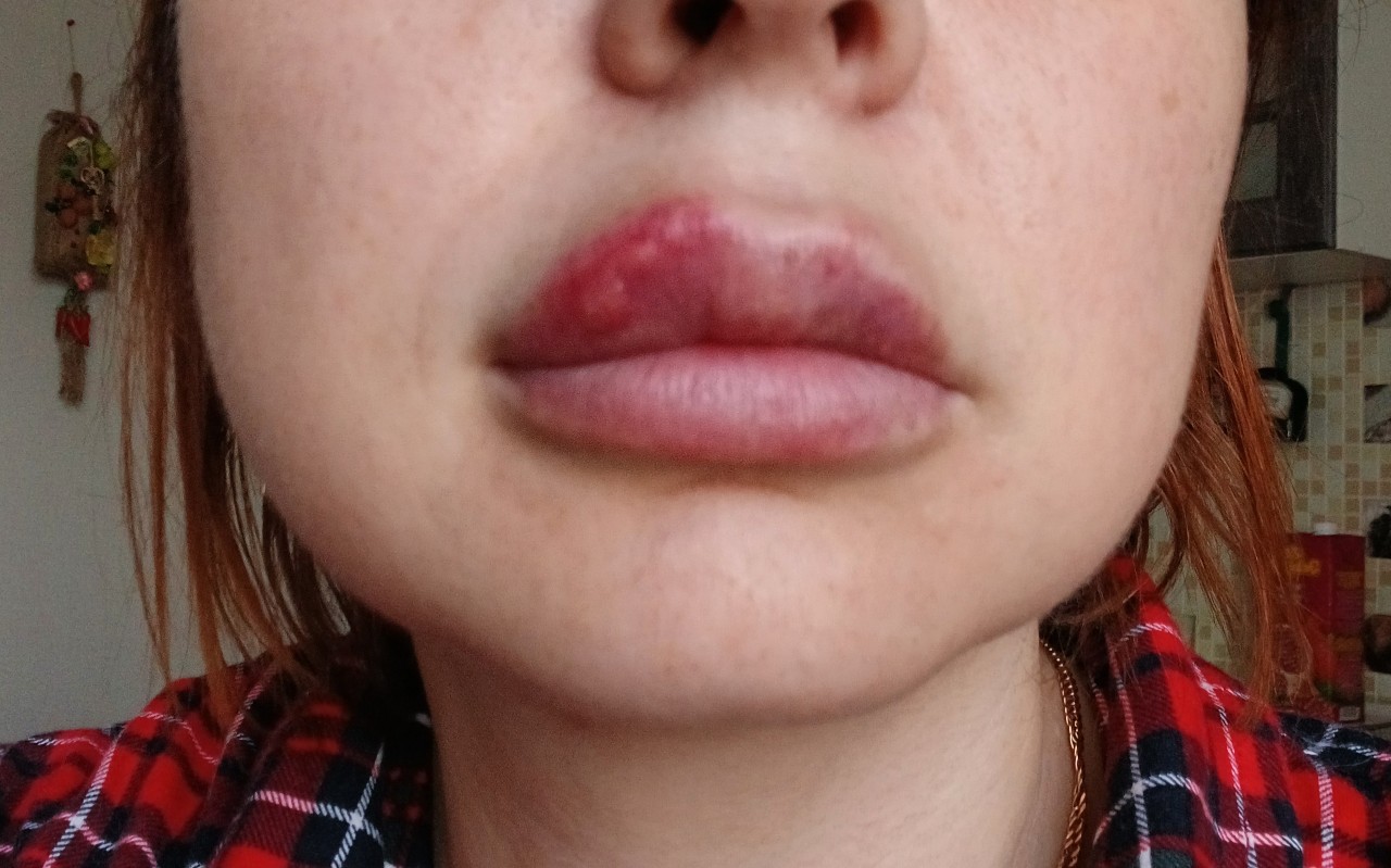 Здравствуйте, 3 дня назад сделала губы, верхняя губа сильно опухла т болела та как будтозубы болели, но сейчас отек спал на одной стороне на другой остался и сегодня образовались пузыри 2 шт. Что это может быть и как лечить?