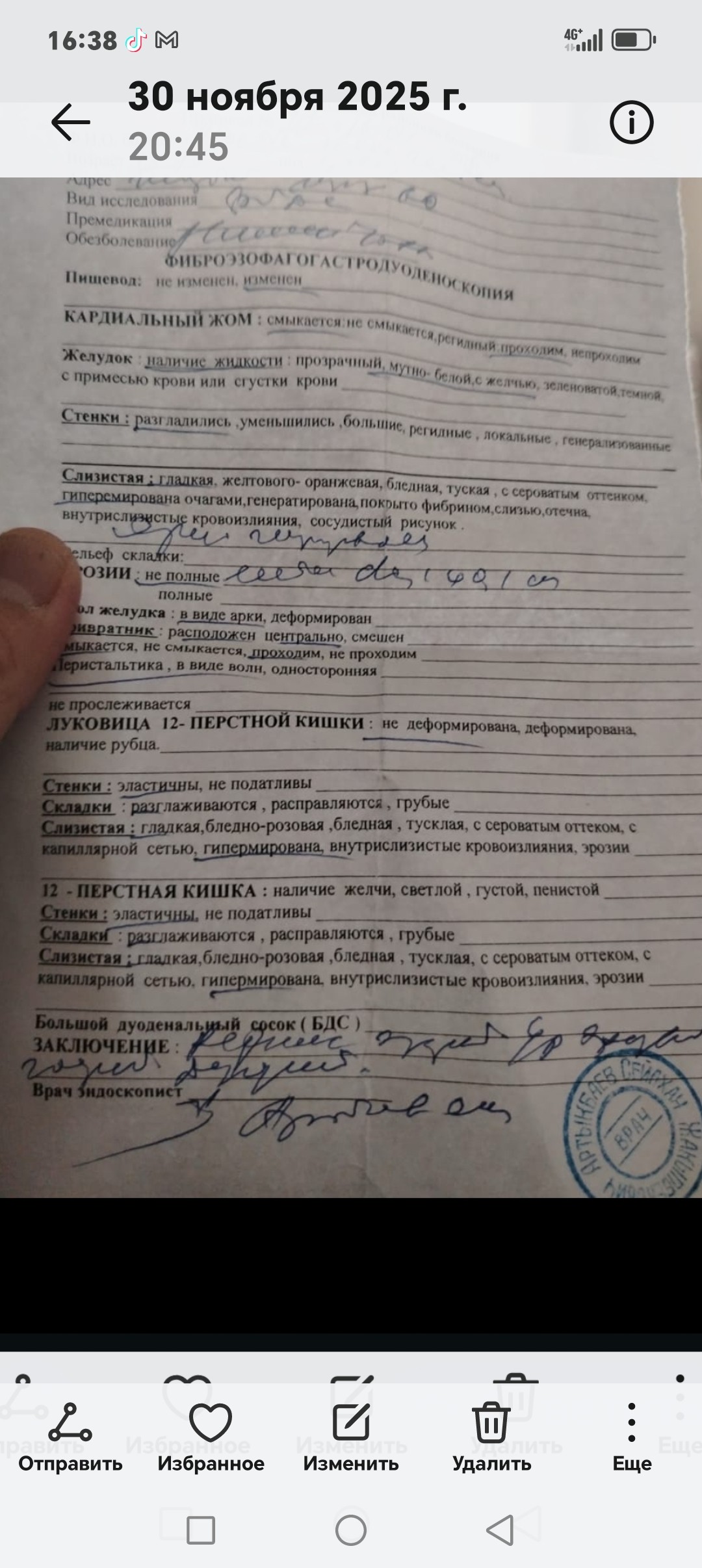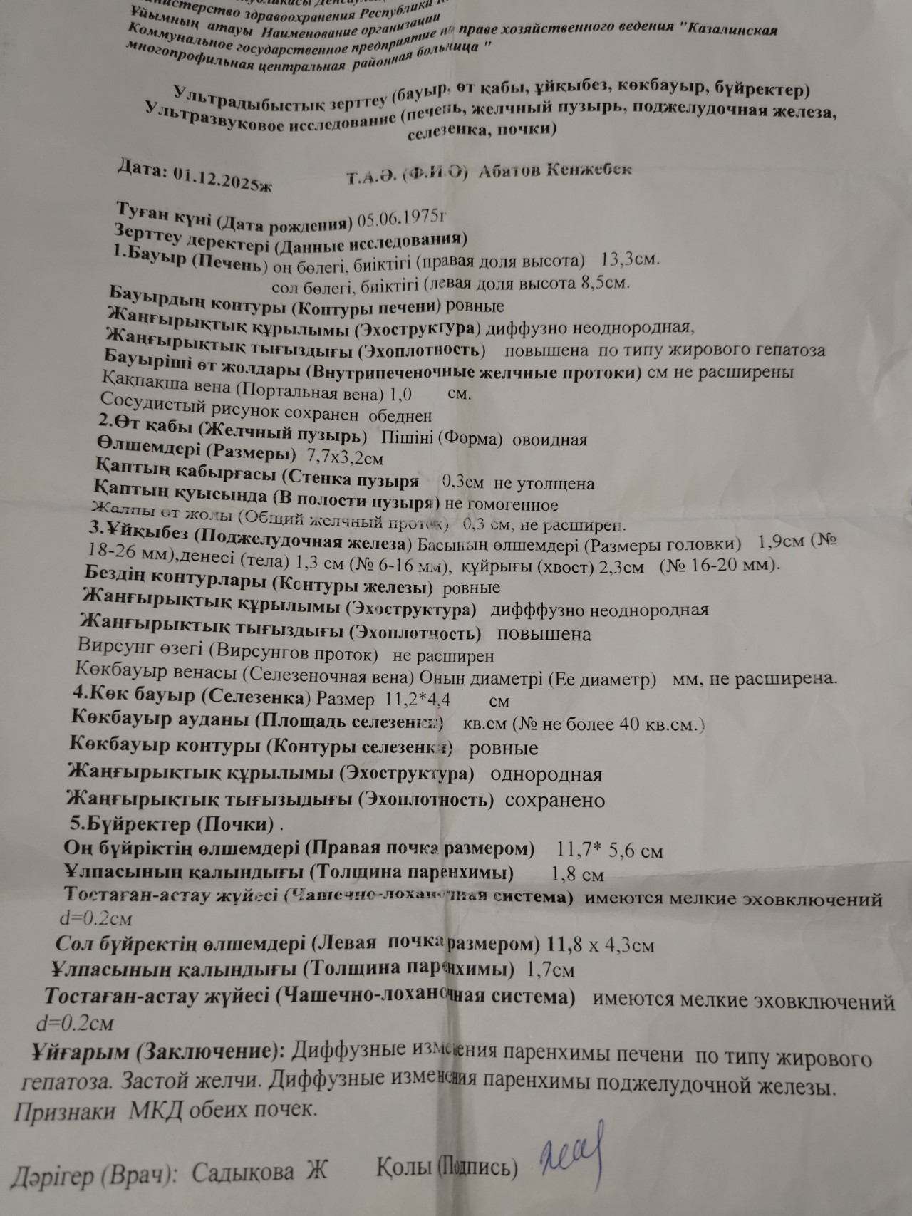 Кенжебек! У вас на контрольном ФГДС еще выявляются эрозии в желудке. Он были и при первом ФГДС. Диета, это первая лекарство, которое применяется при лечении ЖКТ. Вы обязаны ее соблюдать. Диета стол №1 по Певзнеру, см. В интернете. Курс 14 дней. Затем переходите на стол №5. Еще 4 недели. Пиво и алкоголь, много сладкого - отменяются. Ваши эрозии не смогут зажить в желудке. Второе место - это лекарство. У вас застой в желчном пузыре, заброс желчи в желудок, песок в почках. Принимайте т. Нольпаза 20 мг утром и вечером перед едой за 30 минут, курс 14 дней. Затем только утром еще 14 дней. Фосфалюгель по 1 пакету перед приемом пищи 3 раза в день. Курс 10 дней. Затем по 1 пакету перед сном. Курс 10 дней. К. Урсосан по 250 мг после ужина. Курс 4 недели. Переходите на прием воды боржоми, поляна квасов в течении дня используйте для питья. Газовые пузыри перед питьем размешивайте чайной ложкой. Все таблетки начинайте принимать в первый день лечения. Диета +лекарство дадут положительный эффект. Без этого выздоровление не наступит.