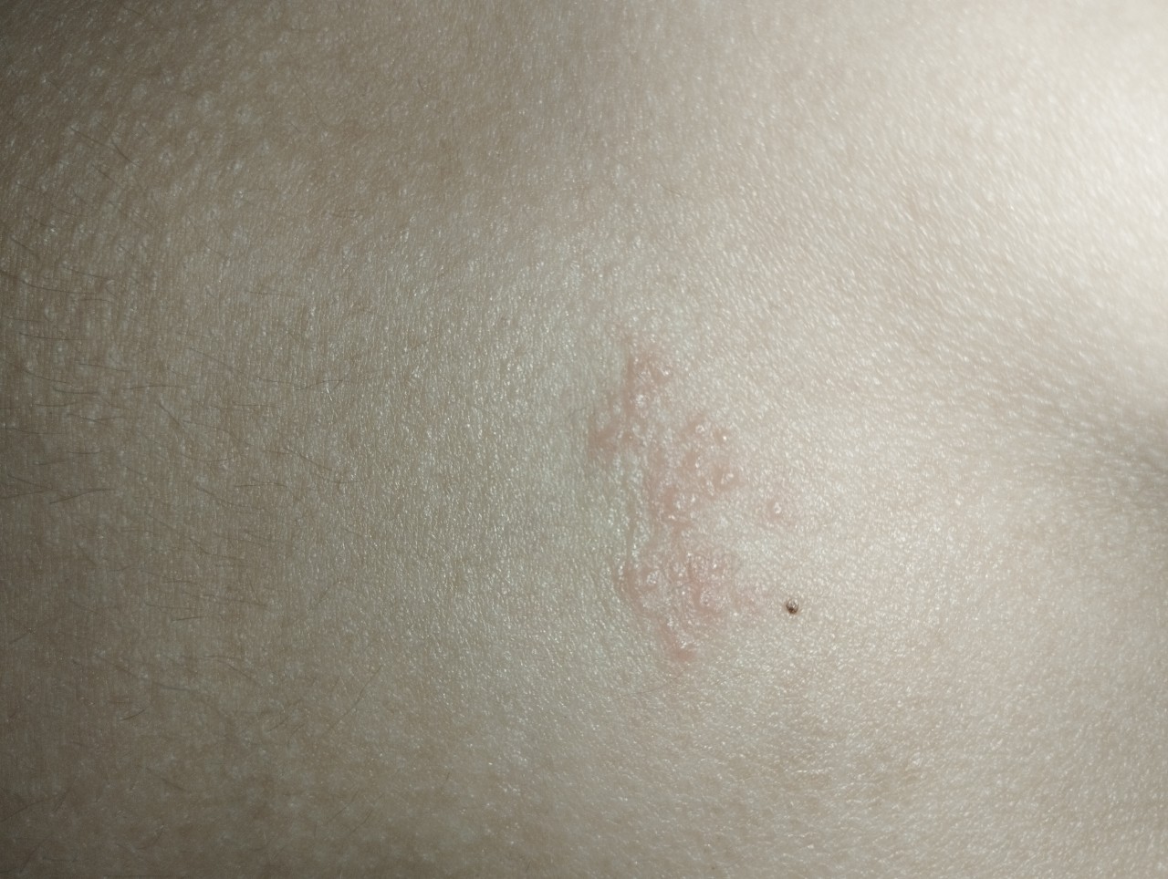 Вітаю, у сина приблизно три дні тому з'явився висип як прищики невеликі трохи вище копчика, зудить, якщо не трогати то ніби ні. Думала може туга резинка на білизні, змінили. Фото прикладаю. Що це може бути? Дякую