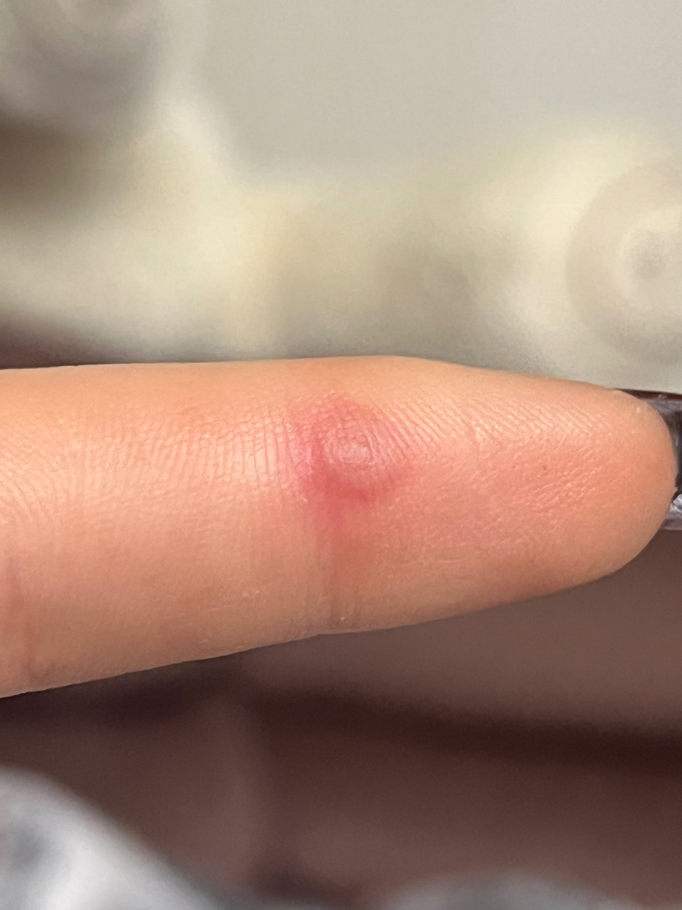 Появилось подобие прыщика Около месяца назад появилось что то похожее на прыщ на указательном...