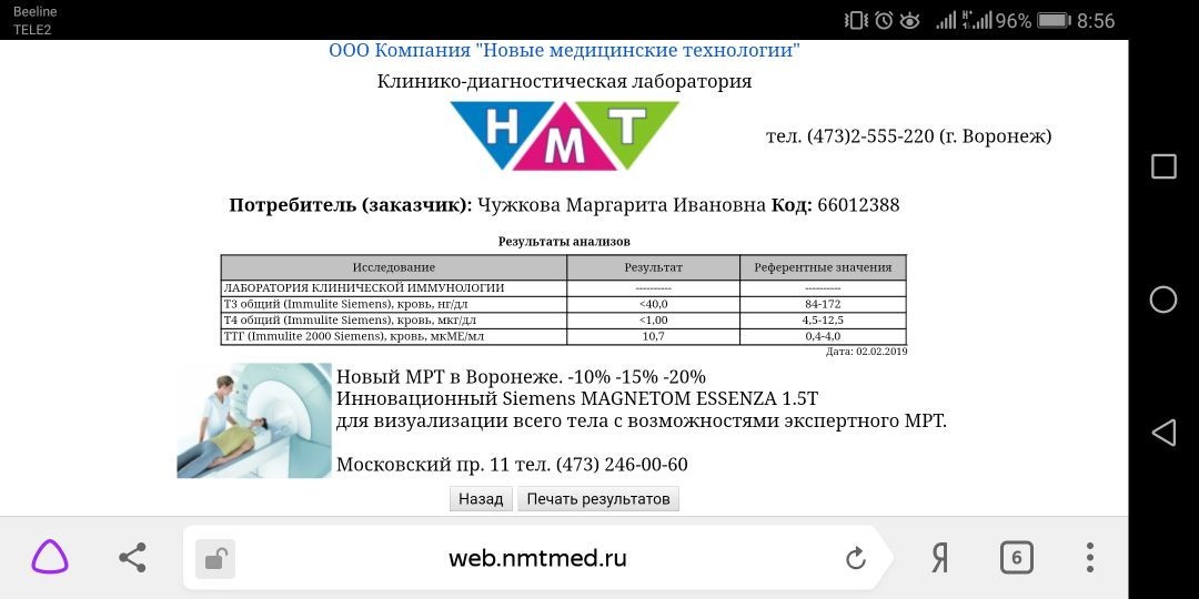 Добрый вечер Ирина Сергеевна, а какой тогда у меня диагноз? А что по поводу эутирокса, правильно ли она мне его назначила? И что если я прислушаюсь вашего мнения и прекращу пить эти препараты, хуже не будет мне через 2 недели, и я читала в интернете что бросать эутирокс категорически теперь нельзя если начала принимать это действительно так? Помогите разобраться просто следующий эндокринолог меня ожидает не раньше чем в конце этого месяца. И это Воронеж. Неизвестно на какое число я получу направление чтобы посетить в областной больнице Воронежа эндокринолога. Фото -это результаты моих анализов, анализы от 02.02.2019 это до приема тирозол, а анализы от 23.03.2019 это после приема тирозол и назначение эутирокса.